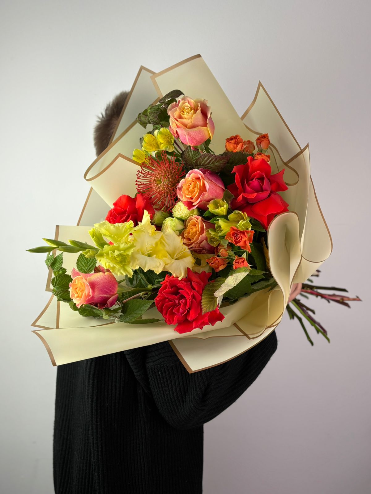 Цветочный салон "Маркет цветов" представляет букет "Огонь" — яркий и выразительный букет, который станет отличным подарком для любого случая. Этот букет сочетает в себе насыщенные цвета и разнообразные цветы, создавая эффект пламени.